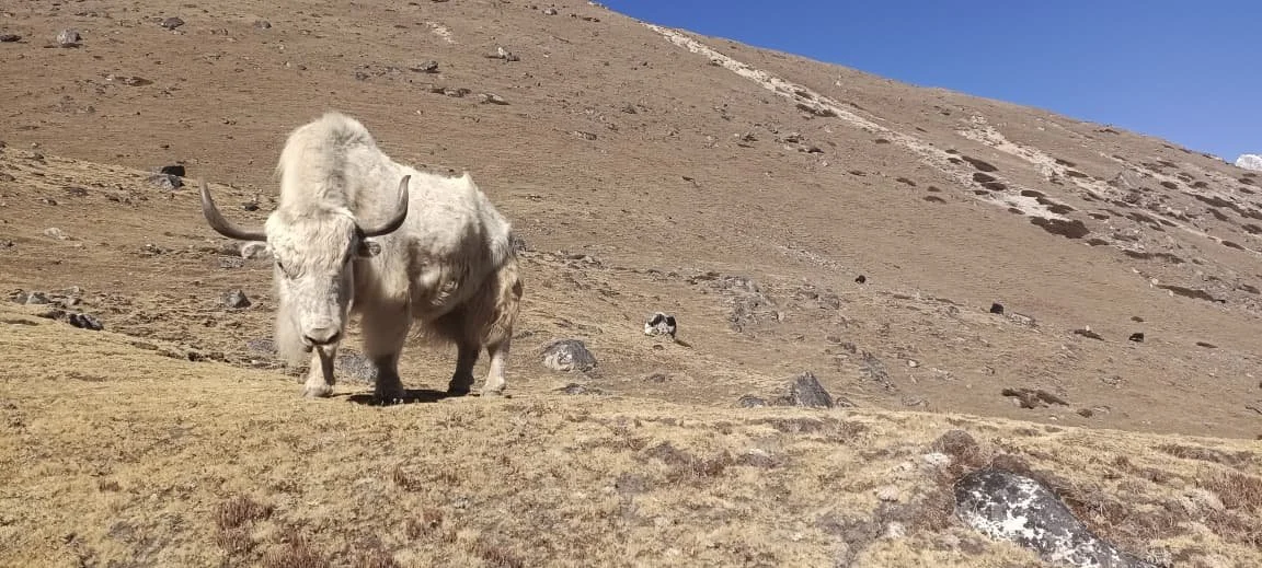 From Khunde, we continue our trek to Thame, and finally Lungdea, where we cross the Renjo-La pass (5,360m) and Gokyo (4,790m).